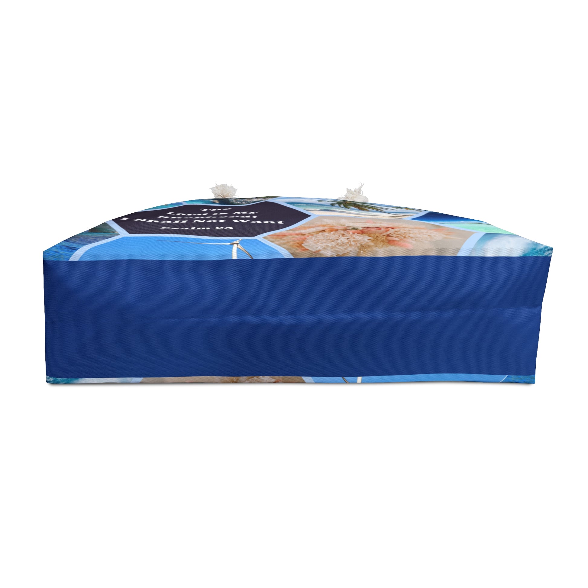 A weekender tote bag for believers of Jesus Christ featuring a verse from psalm 23. Perfect for weekend getaways, church retreats, and mission trips. This tote bag is designed to carry all your essentials while expressing your faith.